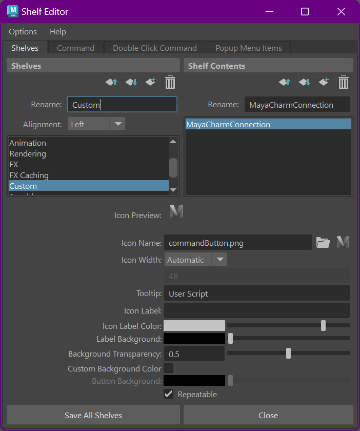 파이선 코드 양식으로 작성 해 주었고 이것을 마야 Custom Shelf 에 등록 해 주면 편리 합니다.