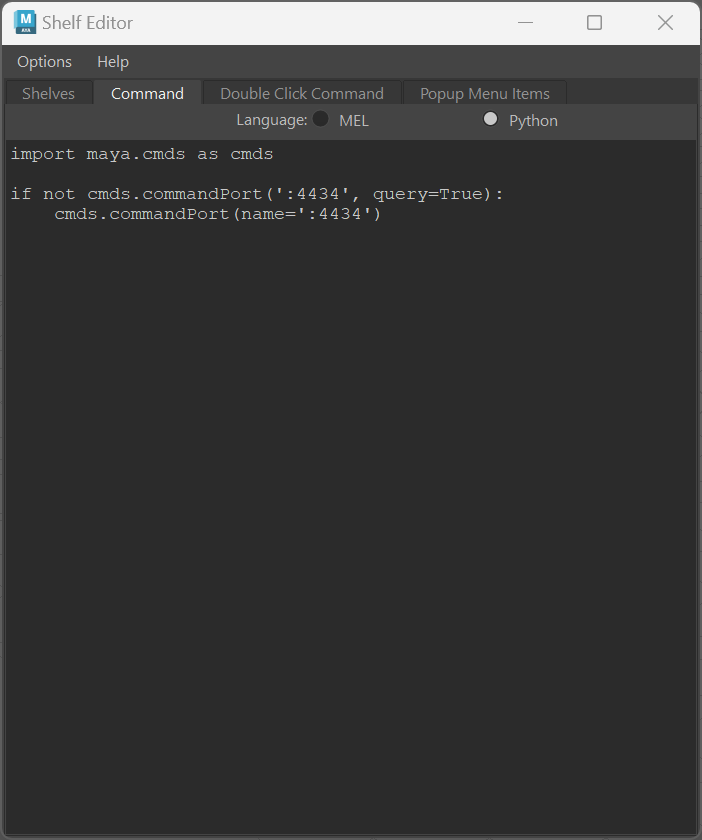 마야 어플리케이션 지정포트 열어주는 스크립트 작성.