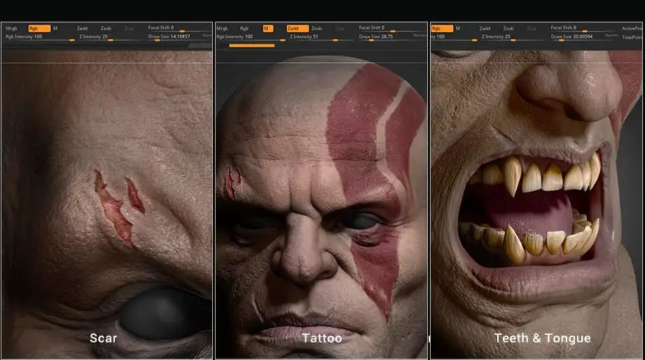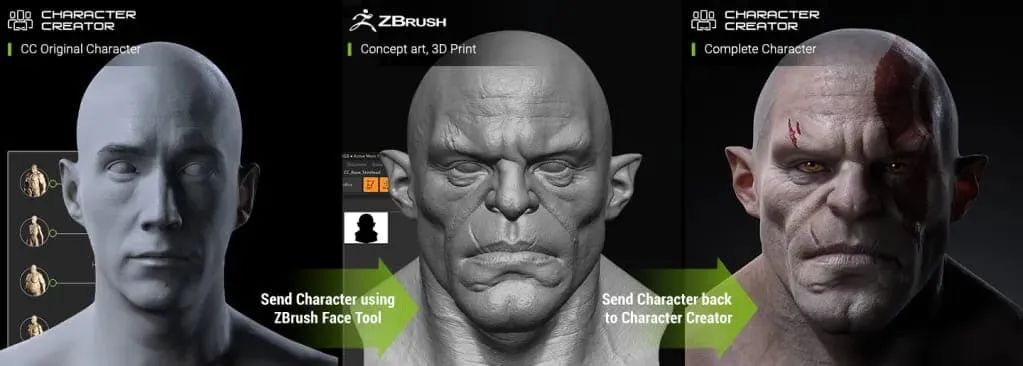 아티스트는 캐릭터 크리에이터, ZBrush 및 페이스 툴을 결합하여 다음과 같은 작업을 수행할 수 있습니다.