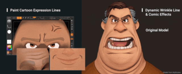 폴리곤 페인팅 기술을 연마하고 주름을 추가하세요. ZBrush용 PolyPaint를 사용하면 움직임과 감정을 표현하기 위해 고안된 일본 만화 기호인 '만후'의 예술을 탐구할 수도 있습니다.