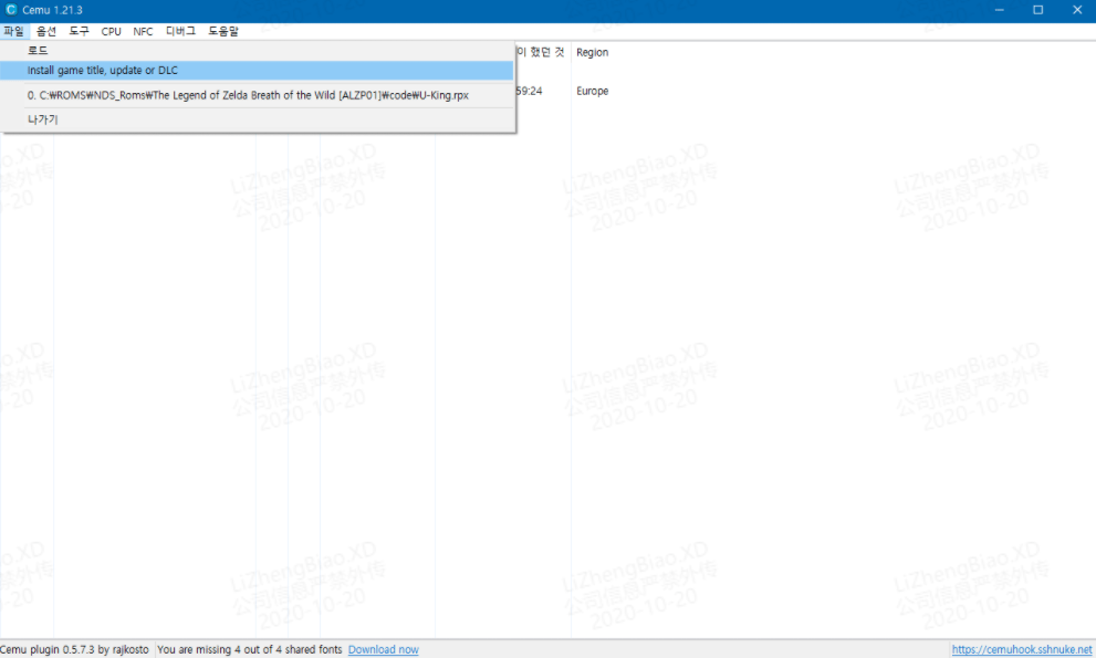 CEMU의 게임을 구동하는 방법.