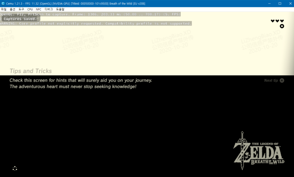 Vulkan API가 제대로 실행되지 않았기 때문에 Cemu Graphics API를 OpenGL로 변경하고 캡처해야 합니다.
