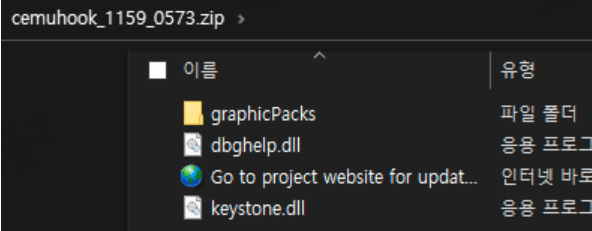 압축을 풀고 모든 디렉터리를 복사하여 CEMU 실행 파일의 디렉터리에 있는 graphicPacks 디렉터리에 붙여넣습니다.
