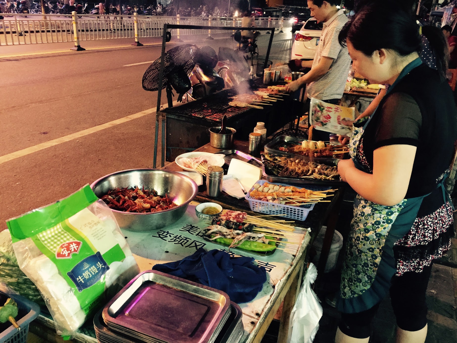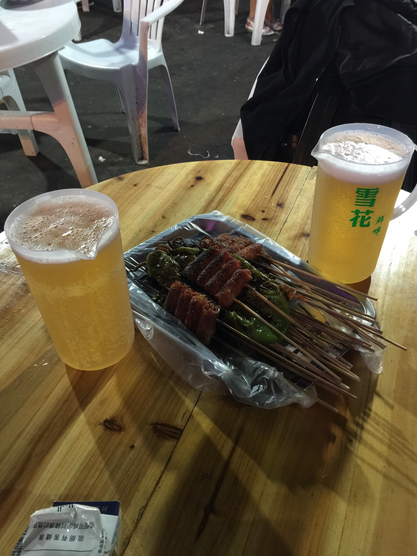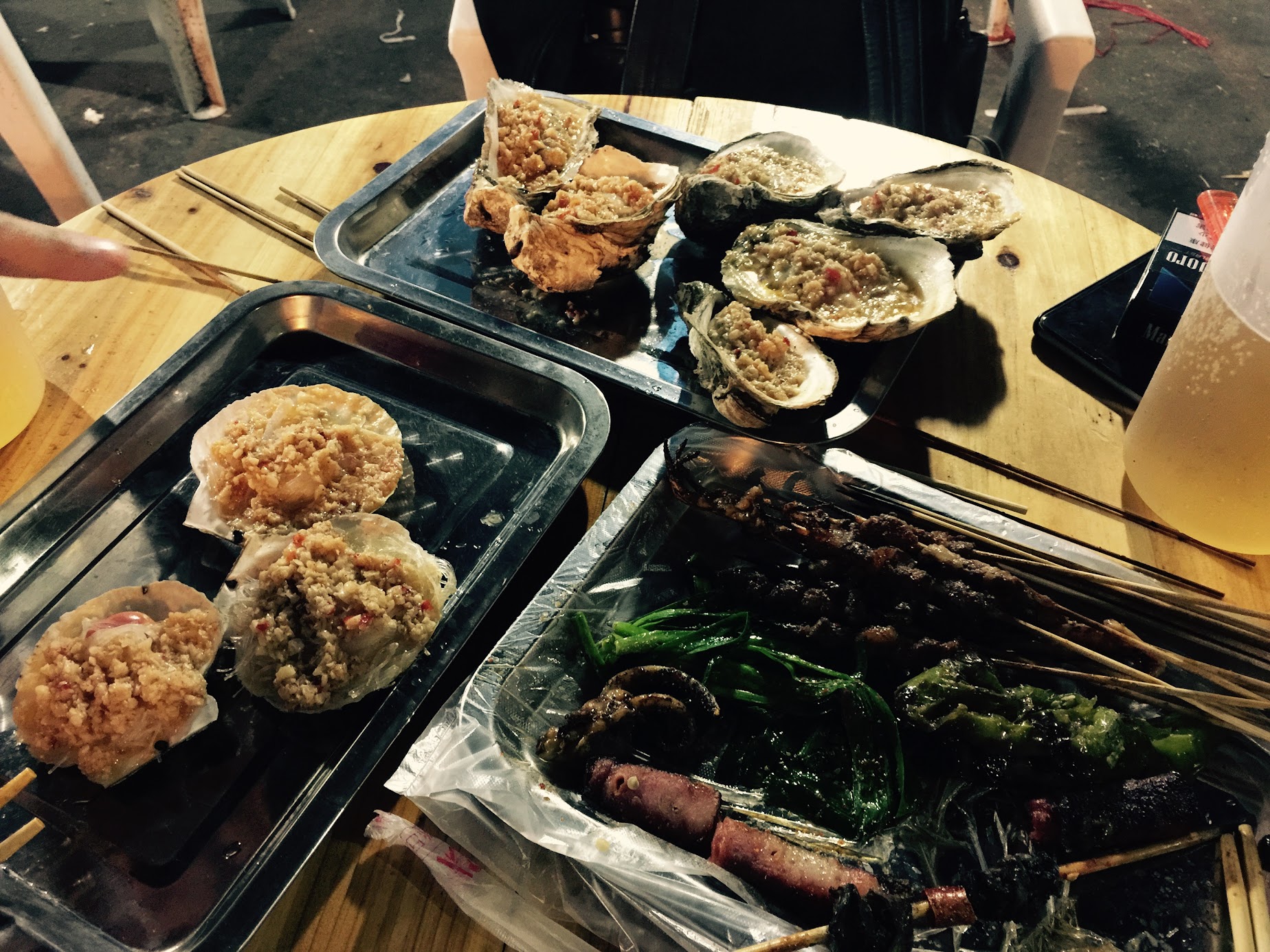 중국 생활 동안 저는 물론이거니와 와이프도 맛있게 먹었던 마늘과 사천 고추가 들어간 굴구이? 그리고 여러가지 양꼬치를 먹었는데요... 이런 길거리 포차 느낌은 찬형이가 안내 했던 하오츠지에 에서 처음 먹어본 것이었습니다.