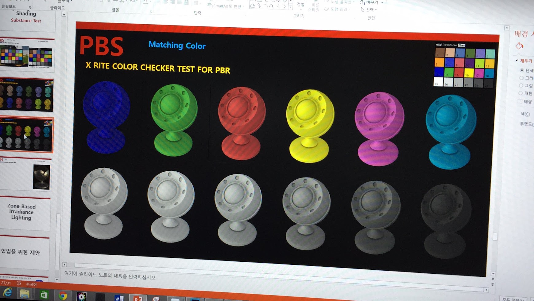 프로젝트에 PBR 워크플로 중에서 Specular Glossy 워크플로를 사용하고 있던 터라 Metallic Roughness 워크플로를 사용하기로 제안 하고 어떻게 기존 데이터를 자동변환 할 것인지에 대한 PBR 관련 내용도 소개를 했구요.