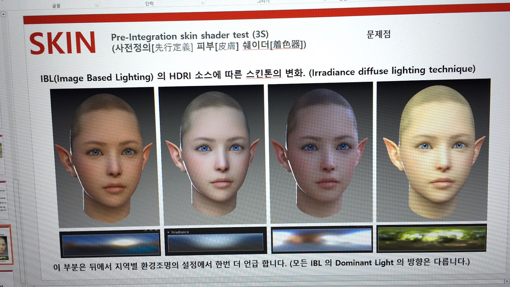 피부 디퓨즈 색상을 어떻게 사용해야 할 것인지 부터 스케터링에 관련 된 것과 페놈브라 영역에서 생기는 쉐도우에 대한 부분도 언급을 했었습니다.