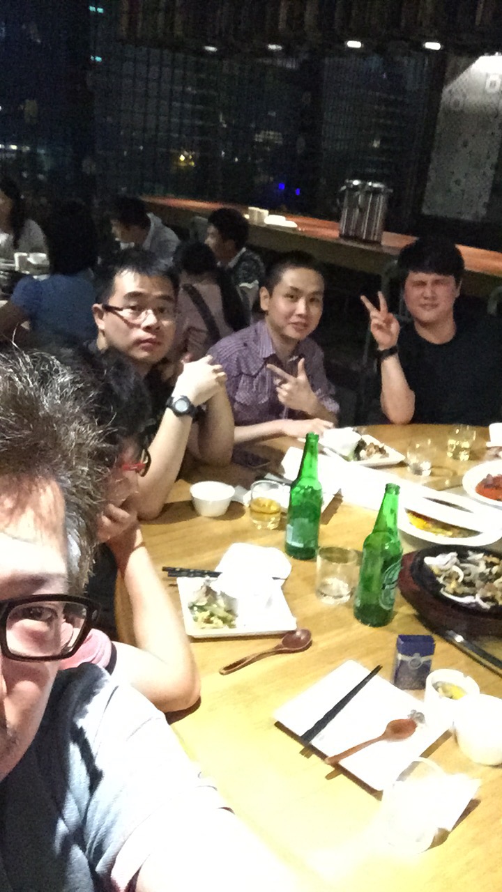 발표가 끝나고 뇌화 스튜디오의 TAD 와 그 동료들과 함께 저녁식사를 했습니다. 안경 쓰고 처다보는 왼쪽 친구가 뇌화 스튜디오의 TAD 인데요. 칭화대 출신으로 UBI SOFT 에서 테크니컬 리거로 일 하다가 저보다 1년 정도 전에 넷이즈에 합류 한 중국인 입니다.