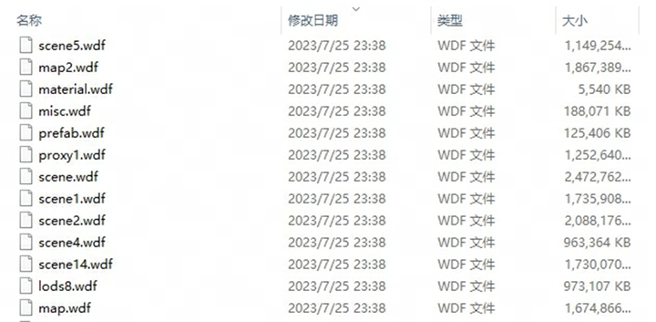 각 WDF 파일은 대략 1~3GB입니다(패키지가 약 2GB일 때 프로그램 성능이 더 좋아진다는 것이 입증되었습니다. 이것은 터무니없는 경험적 가치, 순전히 개인적인 주관적인 감정이며 실제 경전으로 받아들이지 마십시오. 모든 WDF 파일은 4GB로 엄격하게 제어됩니다. (엑스트라 넷에 적응하기 위해 다른 파일 시스템에 존재할 수 있음, NTFS 가 아닌 FAT 그것 또한 시장에 일부 게임이 있으며 패키징 파일은 100MB와 같이 더 작아지며 게임 프로젝트에 따라 스스로 결정할 수 있습니다.