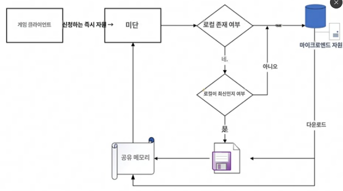 마이크로 엔드의 기본 메커니즘 : 마이크로 엔드 다운로드 기능이 활성화되면 별도의 마이크로 엔드 프로세스가 시작되어 고화질 리소스의 다운로드 및 관리를 담당합니다. 게임 클라이언트와 마이크로 엔드는 프로세스 간 통신을 통해 명령을 전송하고, 다운로드한 리소스는 공유 메모리를 통해 게임에 제공됩니다. 전체 프로세스는 대략 다음과 같습니다: