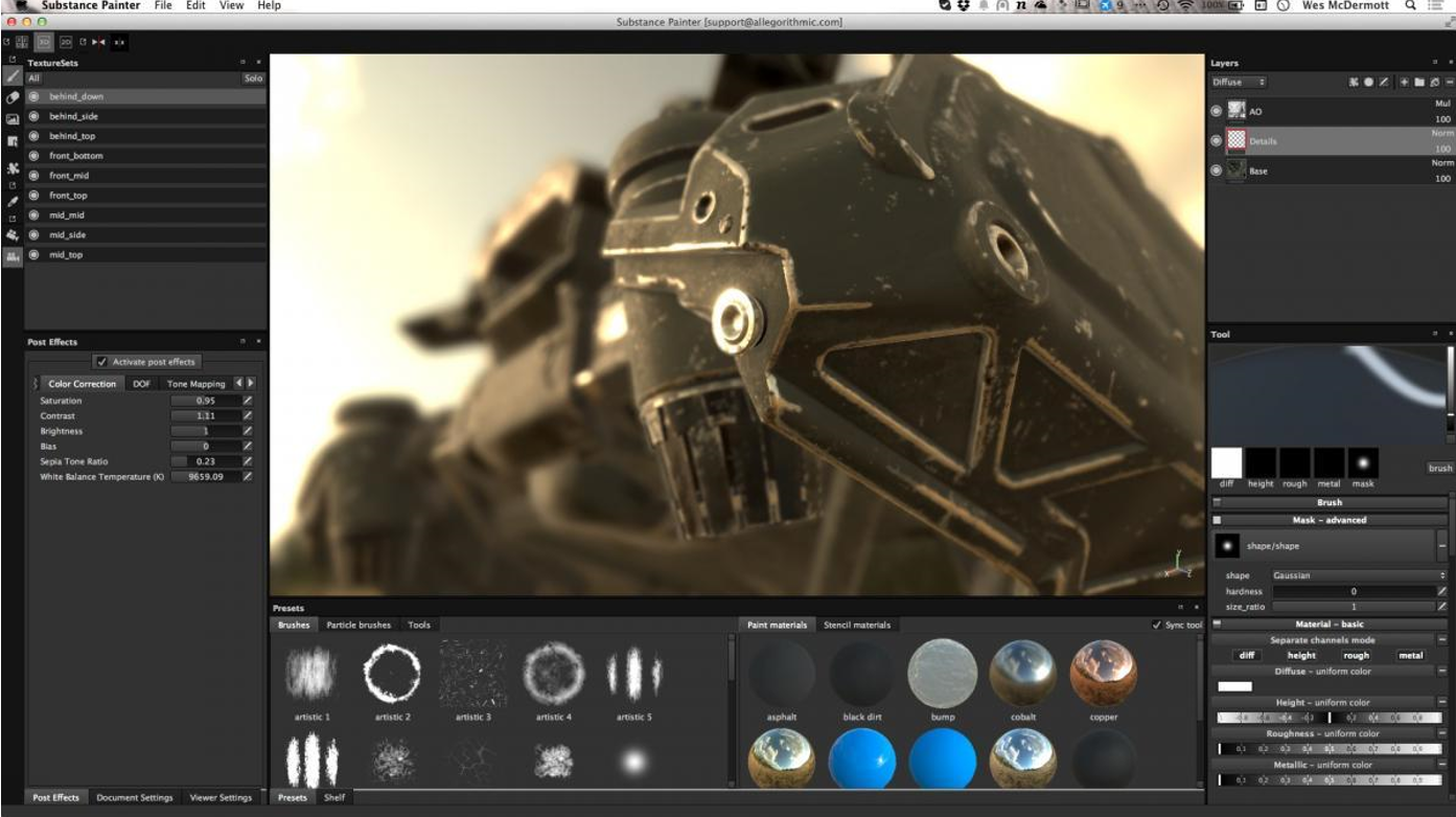 필자가 근무 했던 알레고리드믹 에서 제작 한 차세대 텍스처링 소프트웨어인 섭스턴스 페인터와 섭스턴스 디자이너.