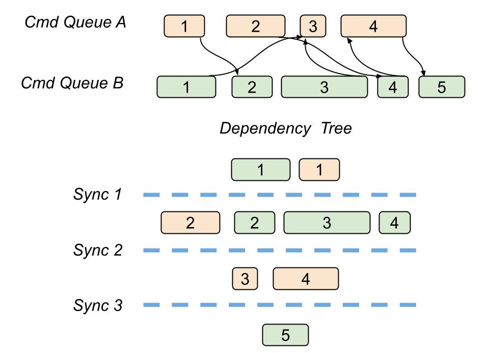 이러한 모든 메커니즘은 기본적으로 서로 다른 스레드 실행을 동기화하기 때문에 GPU 펜스를 사용하여 처리됩니다. 이러한 동기화 지점에는 타이밍 비용이 발생하므로 이러한 동기화 지점의 수를 최소화할 수 있는 최선의 방법을 찾는 것이 까다로운 부분입니다.