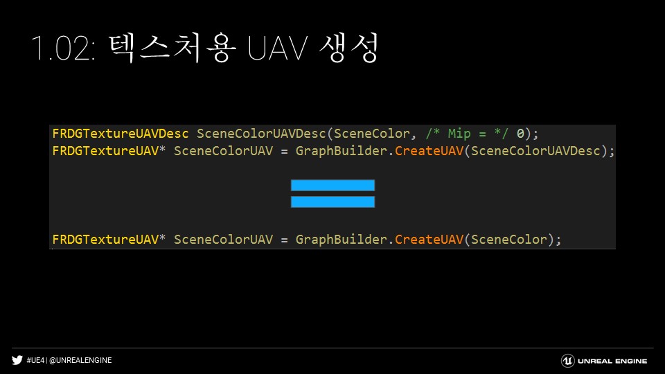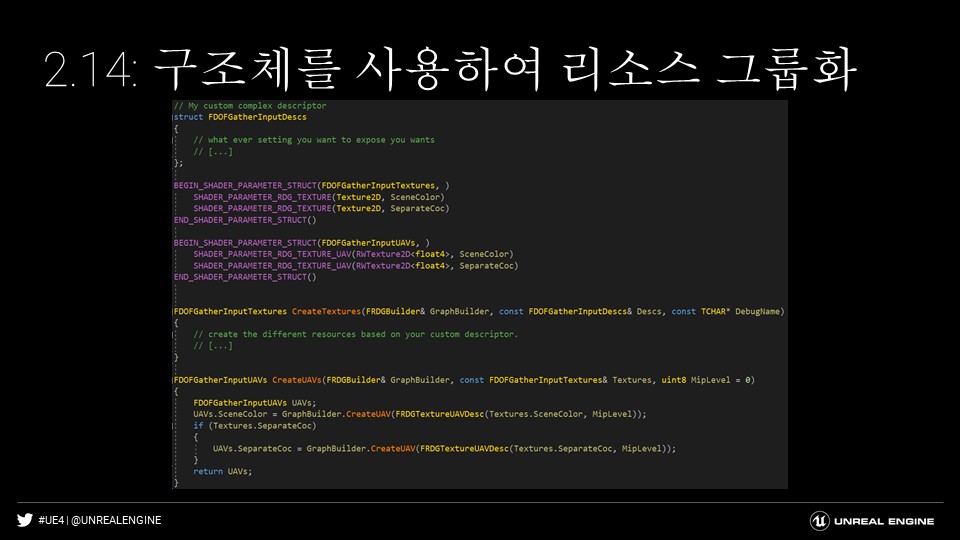 텍스처의 구조는 네이티브 RDG 리소스처럼 작동합니다. 설정 코드의 복잡성이 별도의 함수로 추상화되어 보다 모듈화된 코드가 생성됩니다.