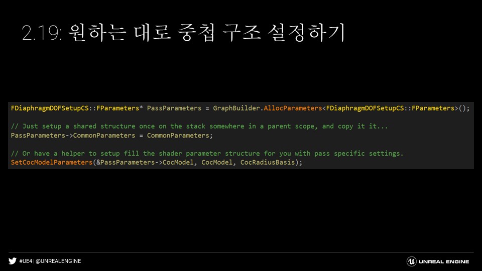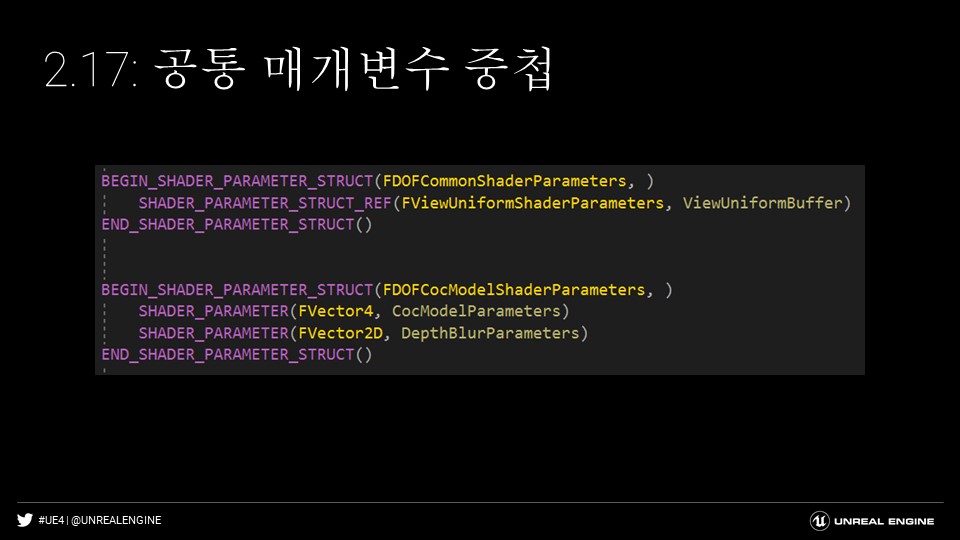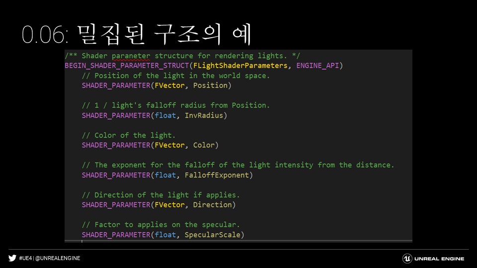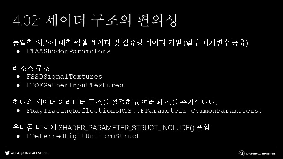 셰이더 파라미터 구조체를 효과적으로 구성하는 방법을 보여주는 다음 슬라이드를 기대해 주세요.