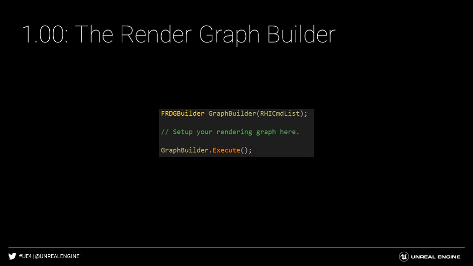 API는 사용하기 쉽습니다. 그래프 빌더 인스턴스를 정의하고 설정 작업을 수행한 후 실행하기만 하면 됩니다. 빌더는 단일 스레드로 실행되며(항상 렌더 스레드에서!) 실행 사이에 상태가 보존되지 않습니다. 전체 그래프는 매 프레임마다 다시 빌드됩니다.진정한 의미의 전체 프레임 최적화를 위해서는 전체 엔진을 동일한 그래프 빌더 인스턴스를 사용하도록 포팅하는 것이 궁극적인 목표입니다. 이 작업은 시간이 걸립니다. 기존 코드를 '포팅'하거나 새 렌더링 코드를 작성할 때 선호하는 패턴은 로컬 그래프 빌더 인스턴스를 정의하고 이를 수동으로 실행하는 것입니다. 엔진의 섹션이 포팅되면 모두 동일한 빌더 인스턴스로 병합됩니다.