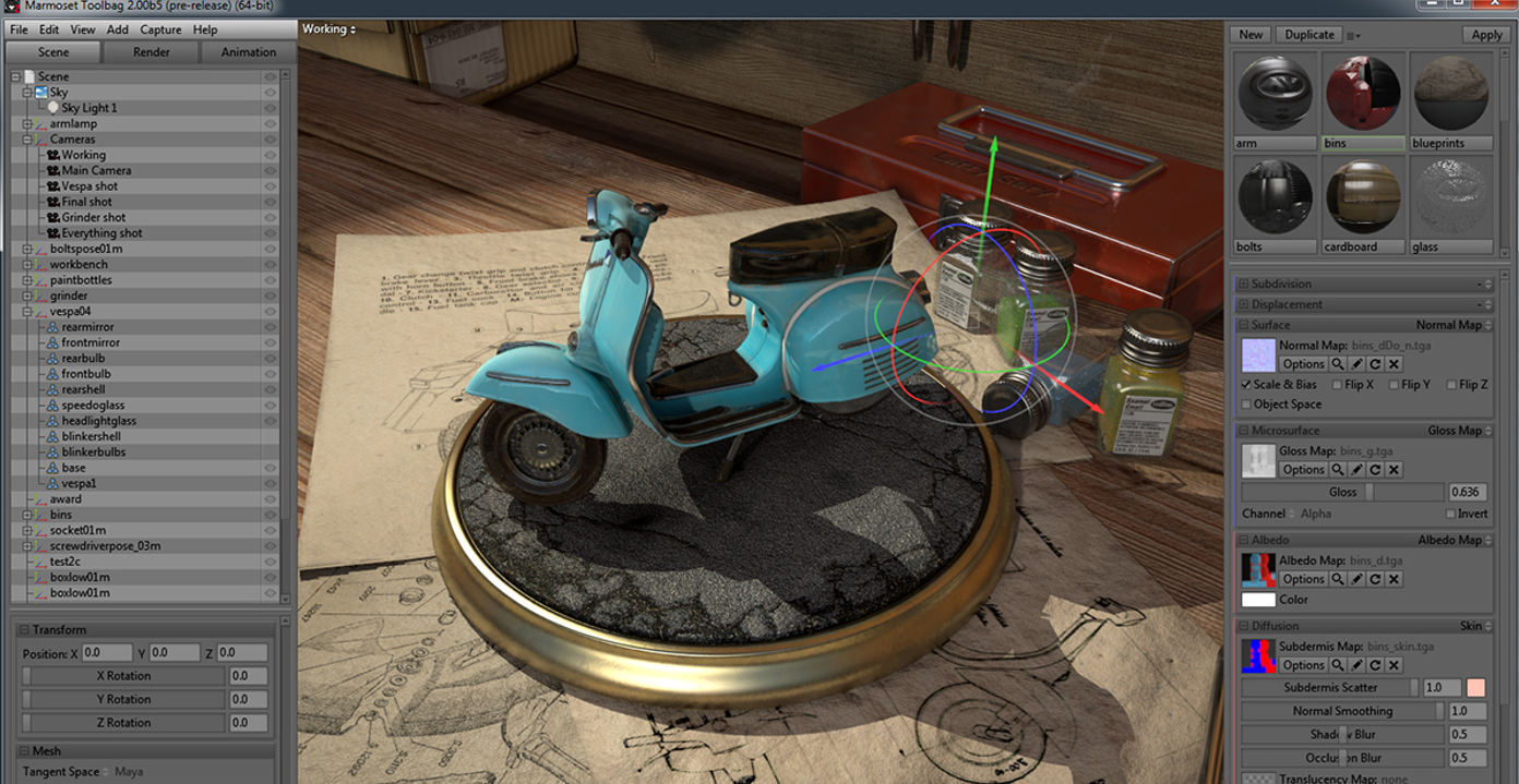 쉐이더의 간단한 편집 기능등 만을 제공 하는 마모셋 툴백.