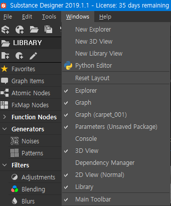 Substance Designer 에는 총 4가지의 함수 편집창이 있습니다.