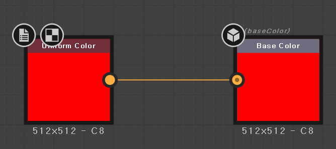 Shift 키를 누른 상태에서 검정색 유니폼 컬러 노드의 아웃 연결점을 클릭 한 후 Shift 키를 계속 누른 상태로 빨간 색 유니폼 컬러 노드의 아웃 연결점으로 이동 시킵니다.