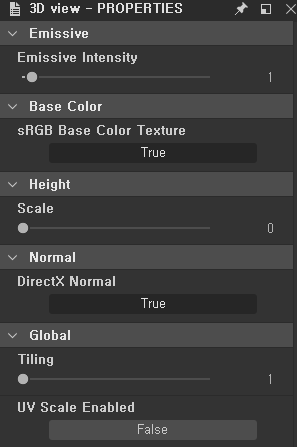 Usage : 색공간 , PBR 텍스처 장르(예로 baseColor , roughness...등등) 그리고 RGBA 컬러 체널 중 어떤 것만 사용 할 것인지 미리 정의 할 수 있다.