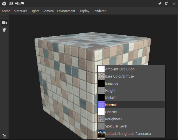 쉐이더를 선택할 수 있고 조명 셋팅 , 뷰 환경 셋팅등을 모두 할 수 있습니다.