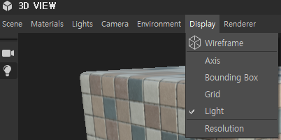 Display 에서 Light 를 켜면 뷰포트 에서 조명 위치를 알 수 있다.