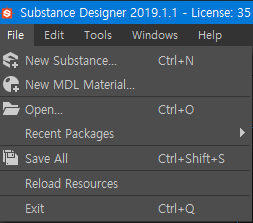 New Substance : 상단 메뉴에서 File / New Substance…(Ctrl + N) 를 클릭 하여 신규 파일를 생성 합니다.