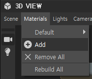 Materials / Add 하여 신규 Material 을 추가 할 수 있습니다.