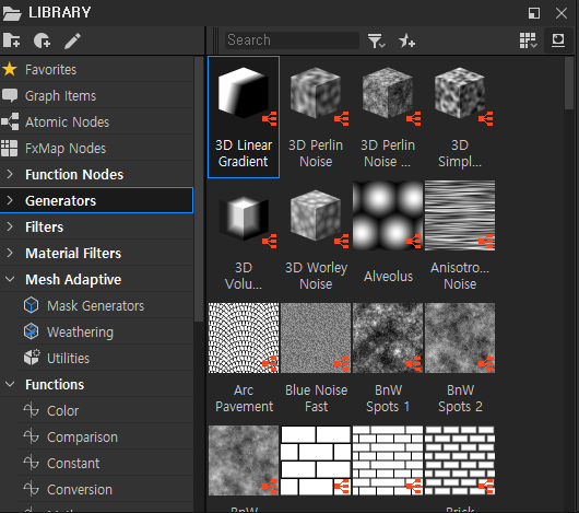 대부분의 기능 구현이 노드 기반으로 되어 있는 섭스턴스 디자이너의 경우 일부 기능을 제외 하고는 라이브러리에 있으며 우리는 이것을 통칭 하여 필터 라고 부르기도 합니다.
