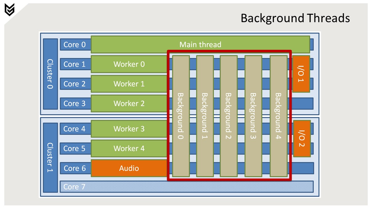메인 코어를 제외한 모든 곳에서 실행 가능 스레드 우선순위가 낮으므로 유휴 시간에만 실행됩니다.