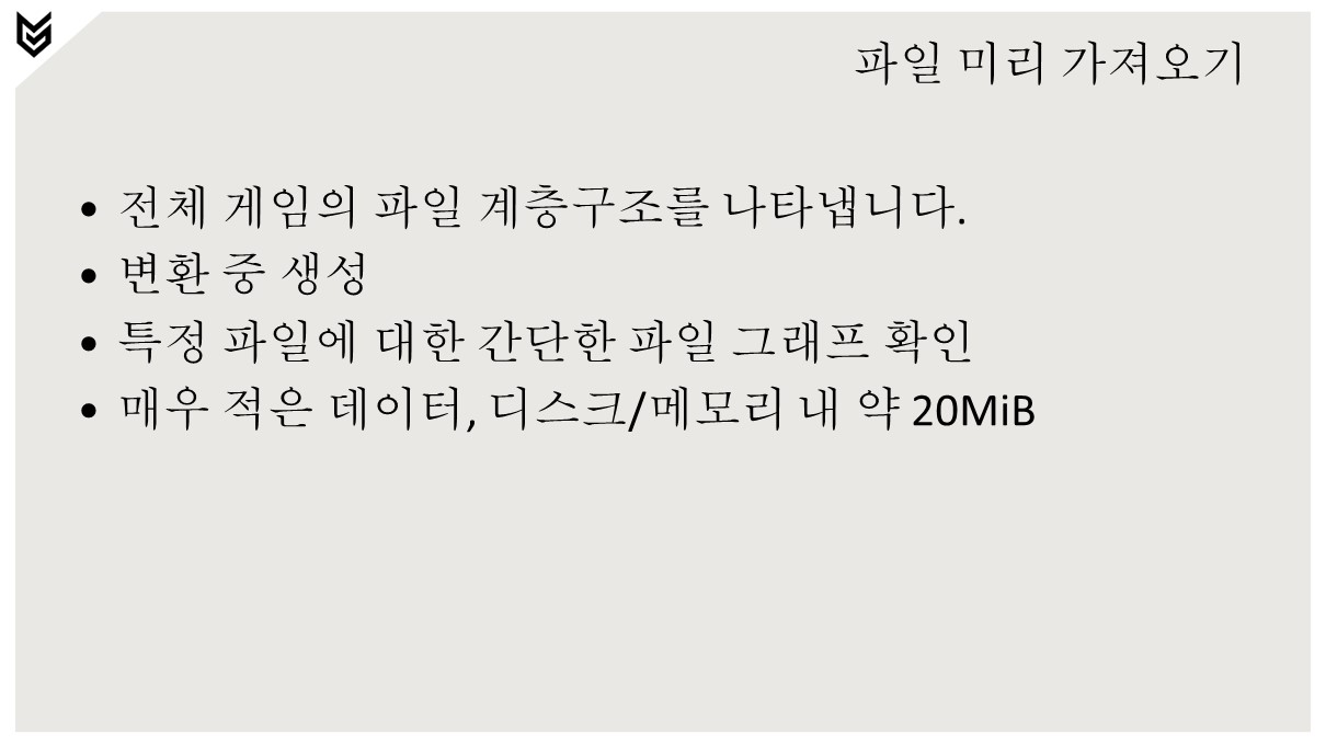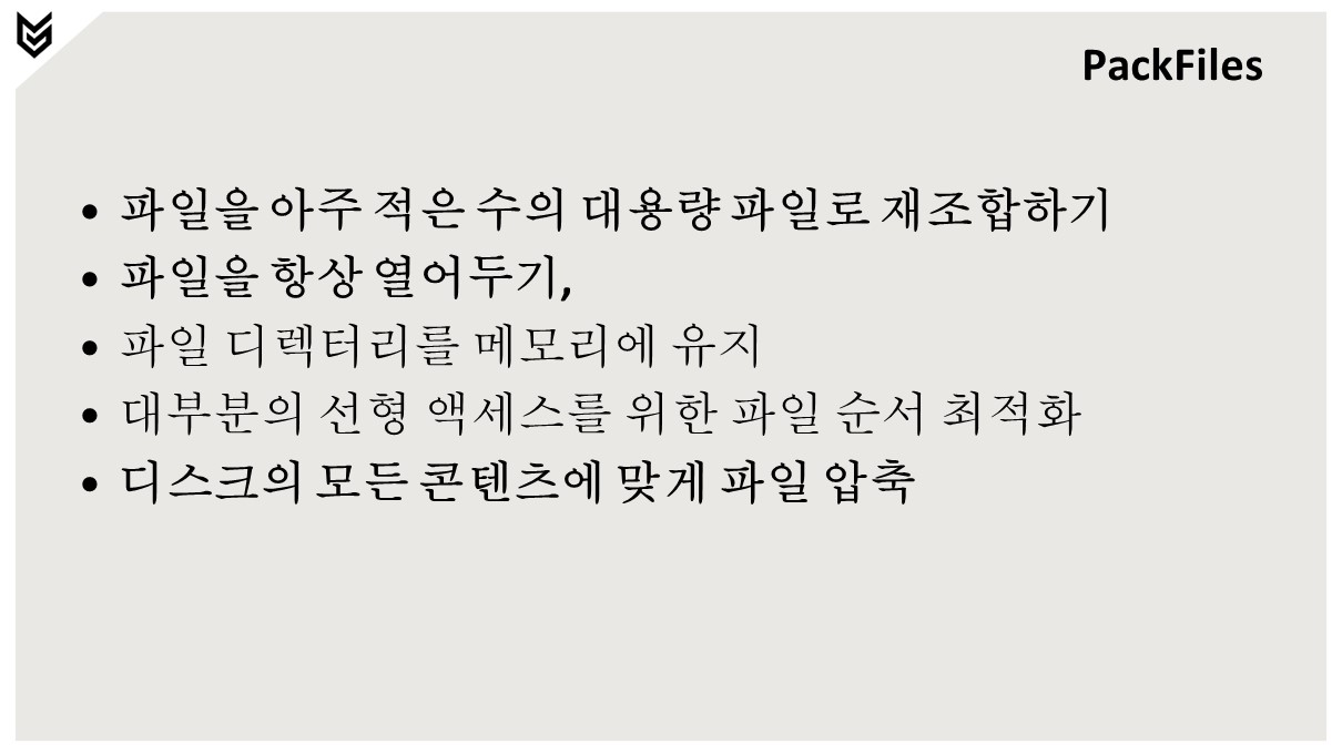 - 변환 수준에서 파일 패킹이 수행되지 않으므로 출력 파일은 모두 개별적으로 읽습니다.