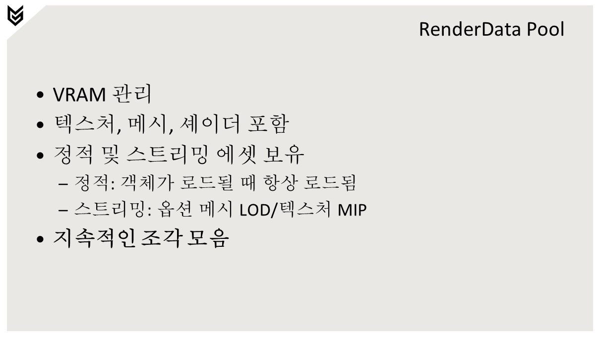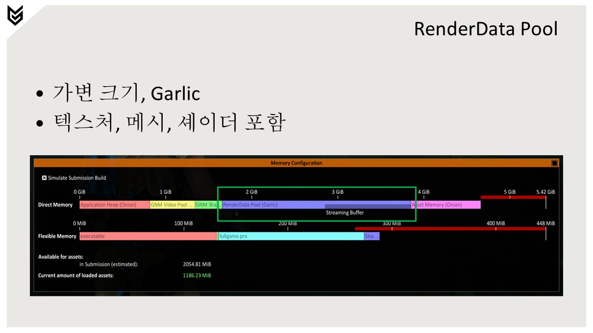 (양파/마늘 이야기가 나오는데 위 실제 발표자료 내 표기 된 어플리케이션 힙을 오니언 이라고 부르고 렌더데이터 풀을 갈릭 이라고 부른다. )