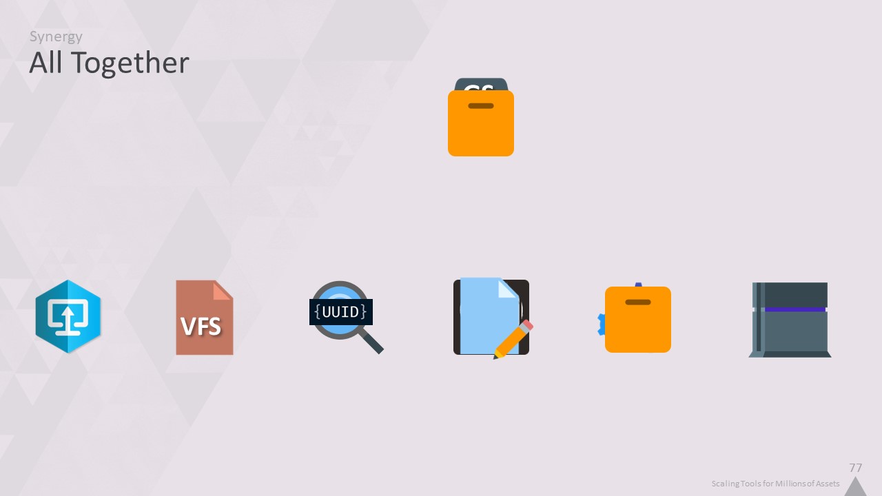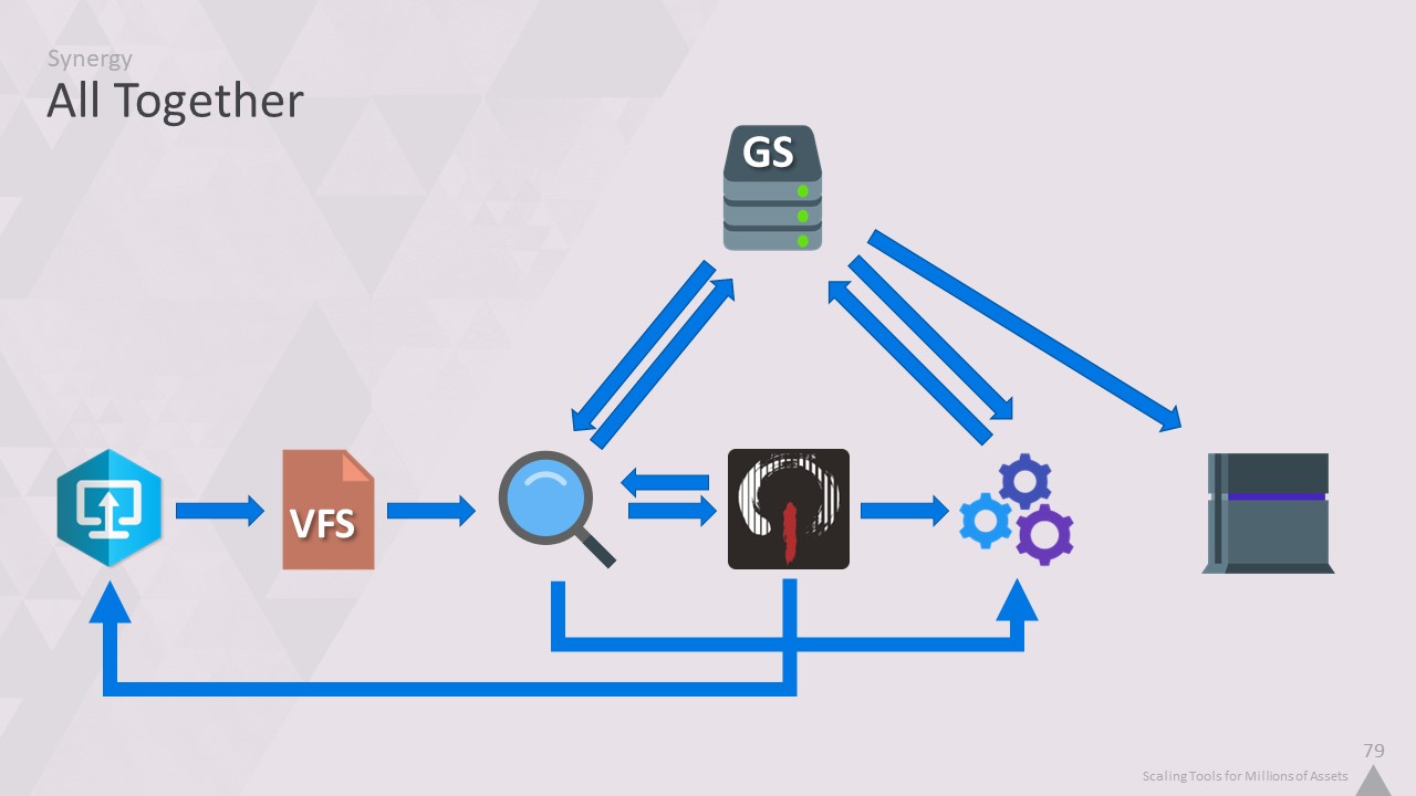 이제 고성능 키 값 저장소에서 모든 것을 스트리밍하는 콘텐츠 로딩 시스템과 파일을 읽을 필요가 없는 에셋 데이터베이스를 갖추게 되었습니다.