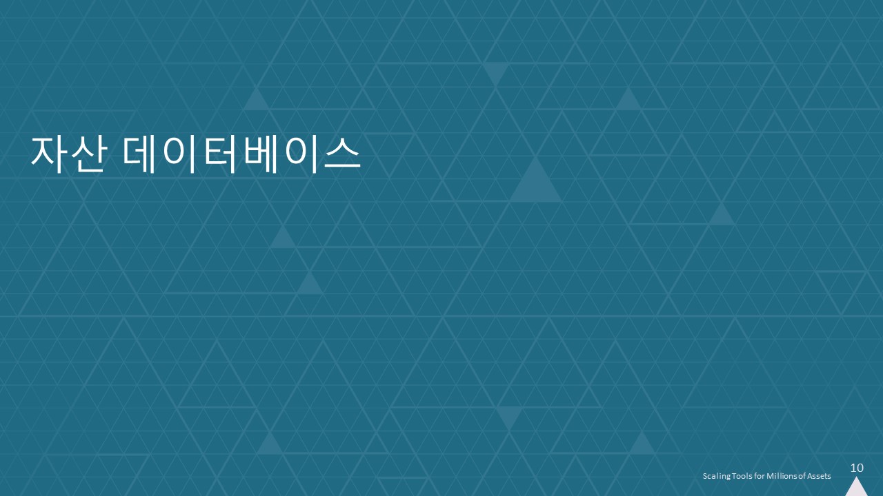 수백만 개의 자산을 위한 확장 도구에 대한 강연에 오신 여러분을 환영합니다. 시작하기 전에 휴대폰을 무음으로 설정하는 것을 잊지 마세요.