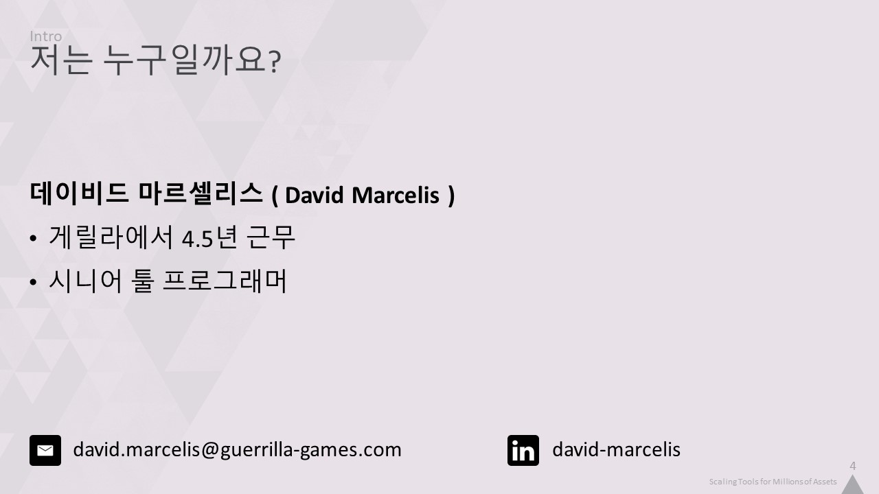 Google Slides에서 "David Marcelis - Scaling Tools for Millions of Assets.pptx" 파일을 엽니다. 몇 분 정도 소요될 수 있습니다.