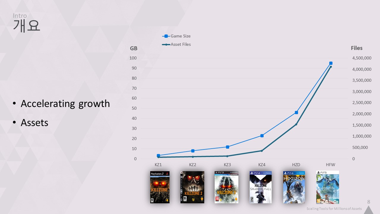 게임회사 내부의 데브옵스와 인프라스트럭처팀 등에 대한 것이 바로 그것입니다. 2011년 이후부터 2023년까지 주로 모바일 플레폼 게임들이 주류를 이루웠던 국내 상황을 보면 주변에 100기가가 넘는 콘텐트를 다루워 본 분들이 흔치 않다는 것을 알게 되었습니다.