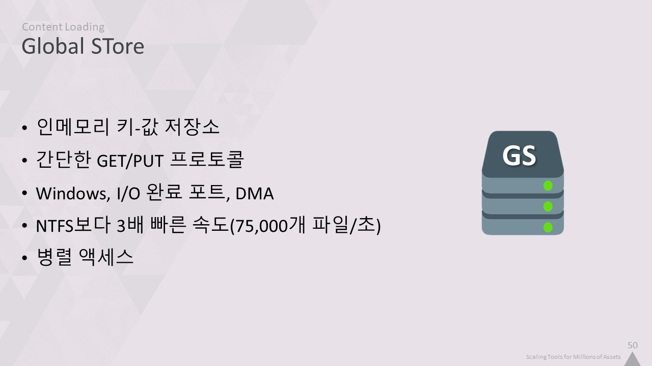 GlobalStore는 수백만 건의 소규모 요청에 최적화되어 있기 때문에 파일 자체를 읽고 파싱하는 것보다 훨씬 빠릅니다.