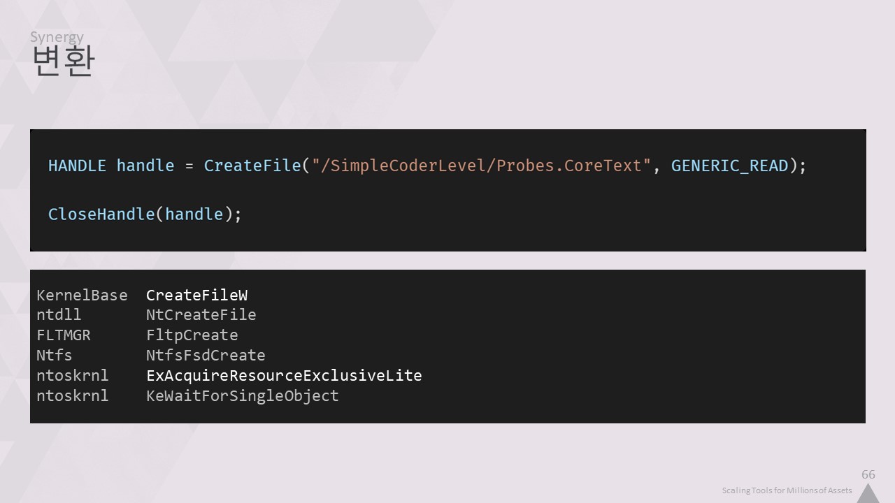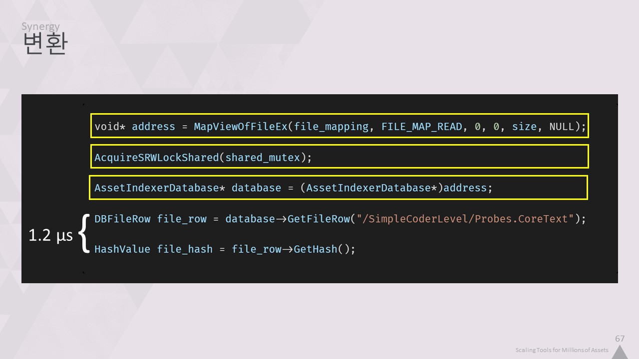 에셋 인덱서 데이터베이스를 변환기의 프로세스 공간에 매핑하기 위해 커널 호출을 한 번만 수행하면 되고,