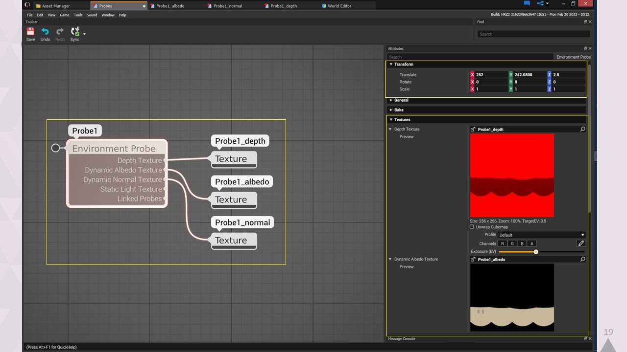 이를 설명하기 위해 콘텐츠의 예시를 살펴보겠습니다. 여기서는 게임에 미리 구워진 리플렉션 데이터를 제공하는 환경 프로브를 사용하겠지만, 그 세부적인 기능은 중요하지 않습니다.