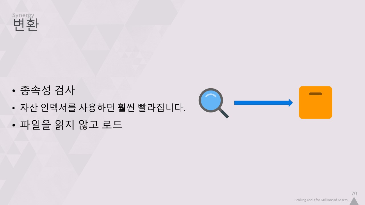 그리고 이 두 시스템을 스마트하게 결합하여이를 통해 대기 시간을 크게 줄이고 수백만 개의 에셋을 손쉽게 작업할 수 있습니다.