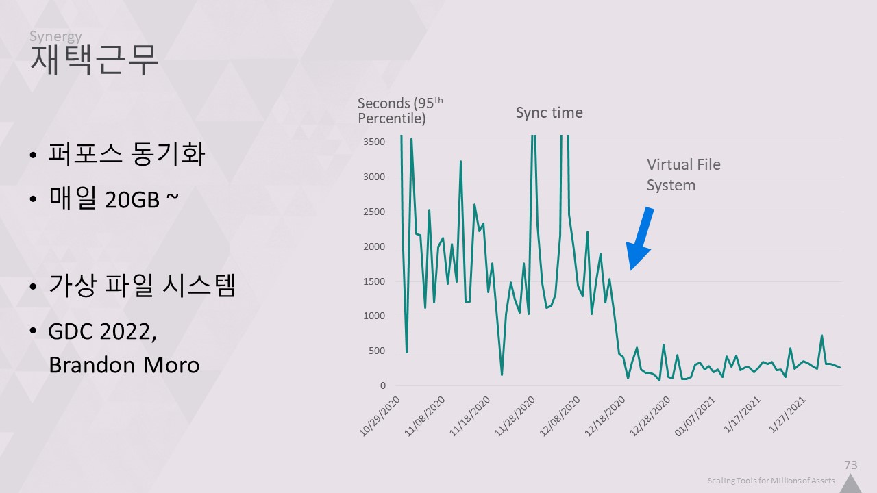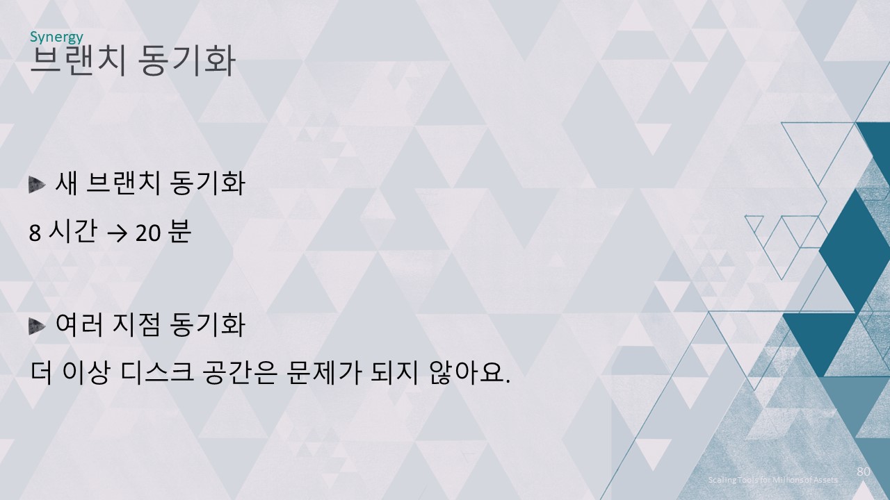 덕분에 새 브랜치에서 게임을 동기화하고 시작하는 데 8시간 이상 걸리던 시간이 20분이면 충분해졌습니다.