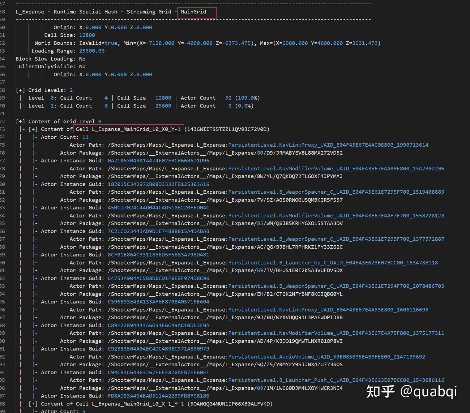 맵 청크의 통계, 정확히 몇 개의 레벨로 나뉘었는지, 각 레벨에 몇 개의 셀이 있는지, 각 셀에 몇 개의 액터가 있는지 등을 확인할 수 있습니다.