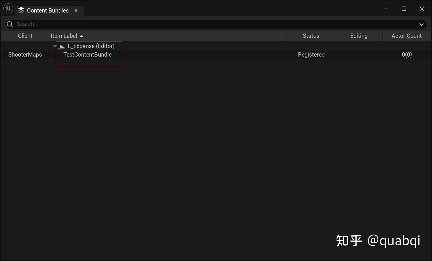 여기에는 아무 것도 없고 이름만 있는 것을 볼 수 있으며, 이름을 원하는 이름으로 변경한 다음 저장하고 편집기를 다시 시작하면 됩니다. 그러면 ContentBundlesOutliner에서 방금 추가한 콘텐츠 번들을 볼 수 있습니다.