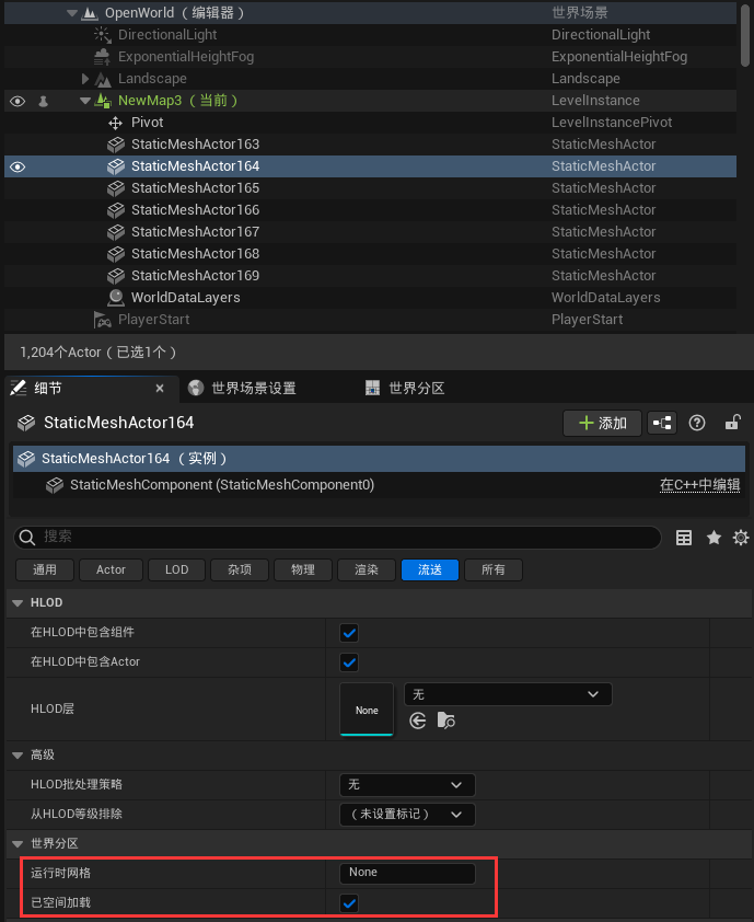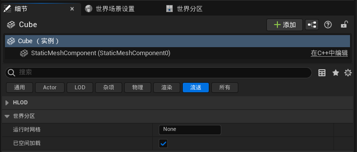씬에 새로 생성된 액터는 기본적으로 스트리밍에 참여하며, 즉 언로드되며 액터의 디테일 패널에서 관련 조정을 할 수 있습니다.