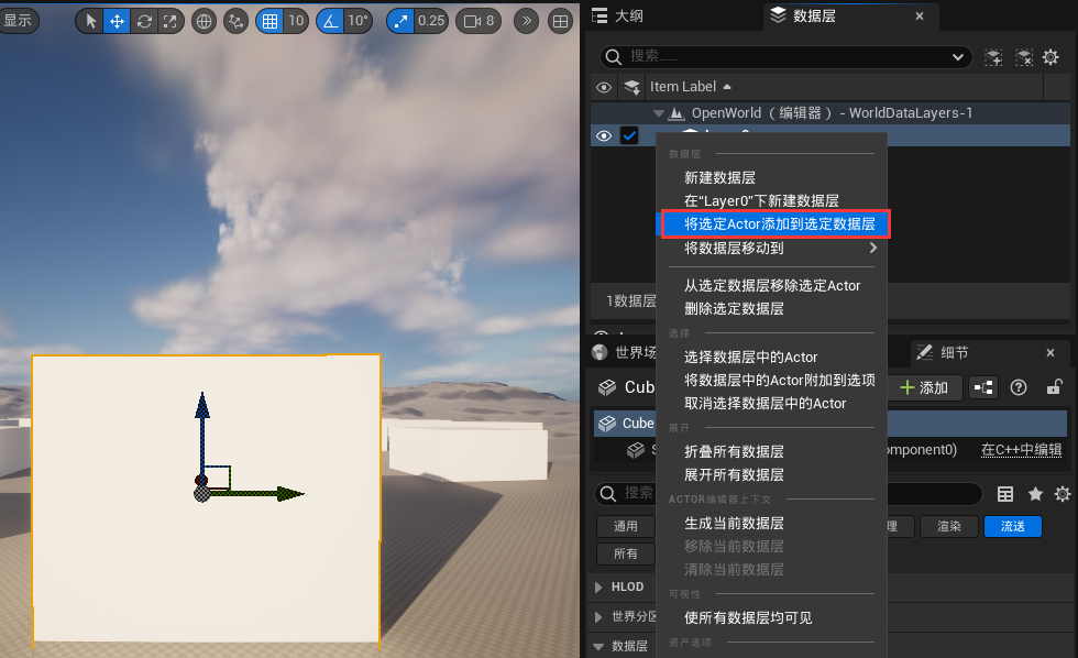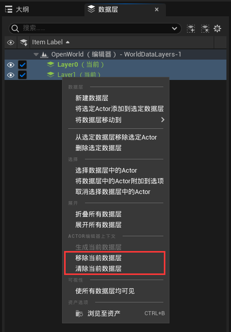 또한 데이터 레이어의 현재 컨텍스트를 설정하면 새 액터가 현재 데이터 레이어에 자동으로 추가됩니다:
