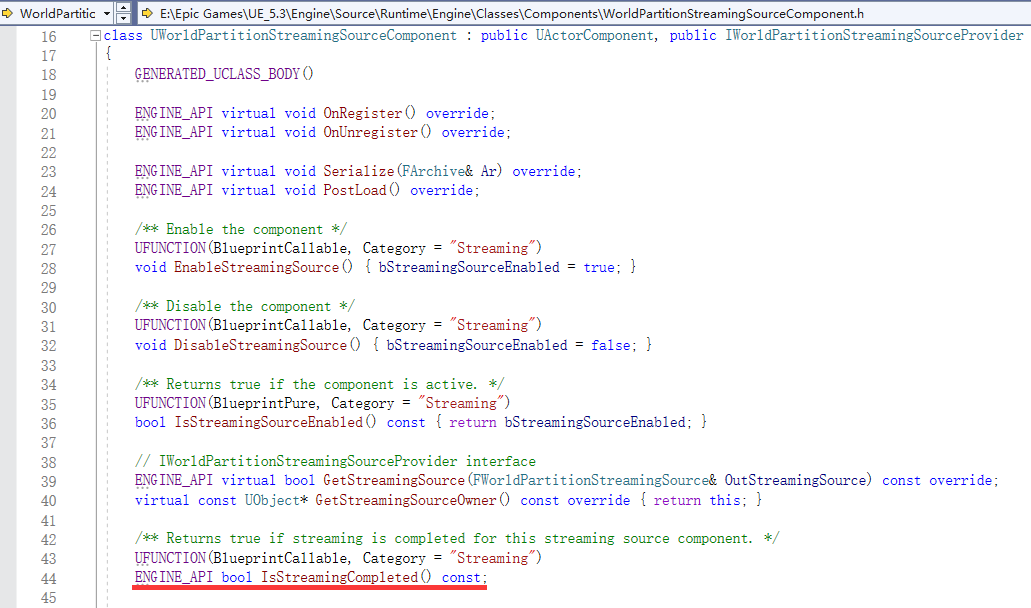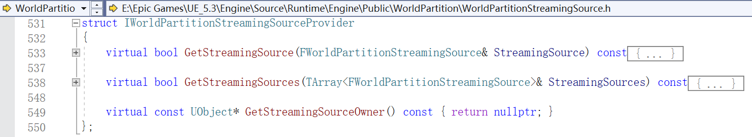 스트리밍 소스에 해당하는 C++ 인터페이스는 다음과 같습니다: IWorldPartitionStreamingSourceProvider