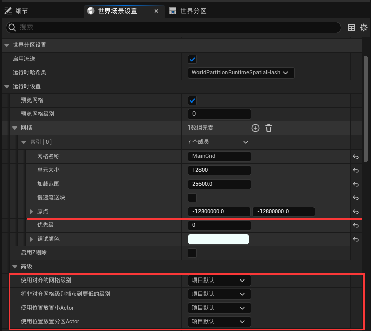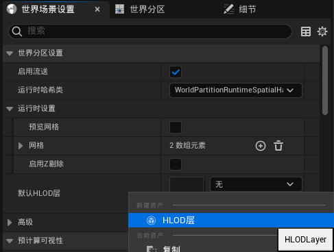 - 로드 범위: HLOD 그리드의 로드 범위를 구성하며, 값은 메인 그리드 셀 크기의 정수 배수여야 합니다.
