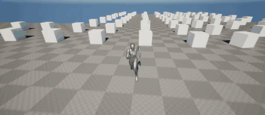 - 중력이 있는 공이 씬에 스폰되어 바닥에 떨어지고, 캐릭터가 바닥이 스트리밍되는 영역에서 멀어지면 공이 바닥에 떨어집니다.