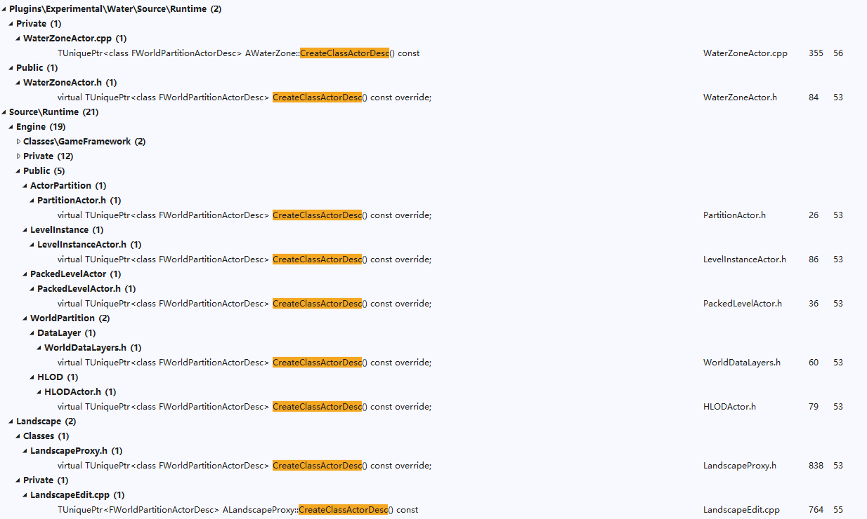 }액터의 월드 파티셔닝 지원은 주로 에디터의 더미 함수가 액터 베이스 클래스에 추가되어 월드 파티션에 대한 액터 설명을 생성하는 데 반영되었습니다: