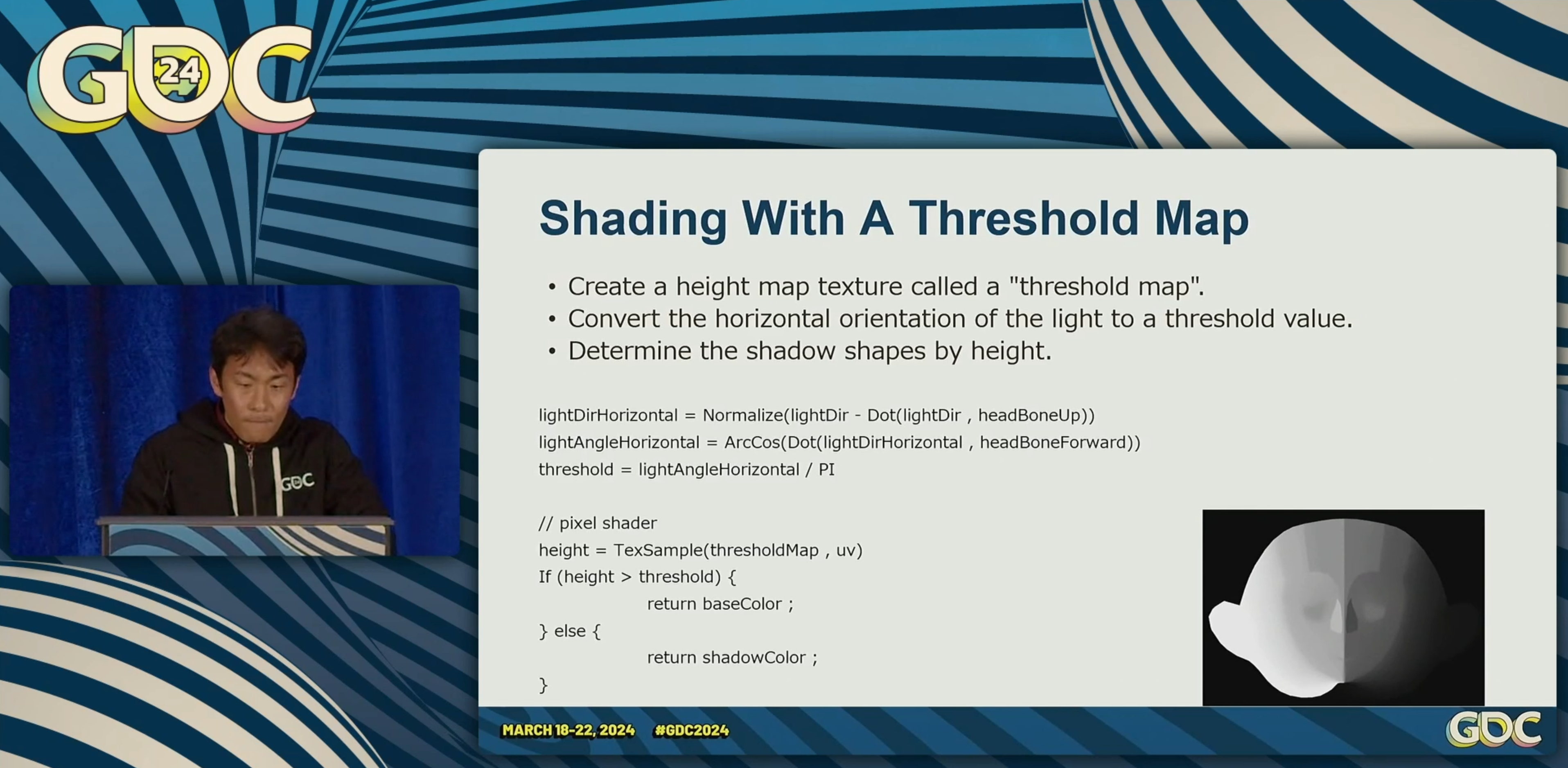 스레스홀드 값은 앵글임. lightAngleHorizontal 값을 구하고 PI 로 나누며 레인지 0 부터 1 을 노말라이즈 함. 그 다음 결정 하죠 어디가 그림자고 어디가 그림자가 아닌지 말이죠...