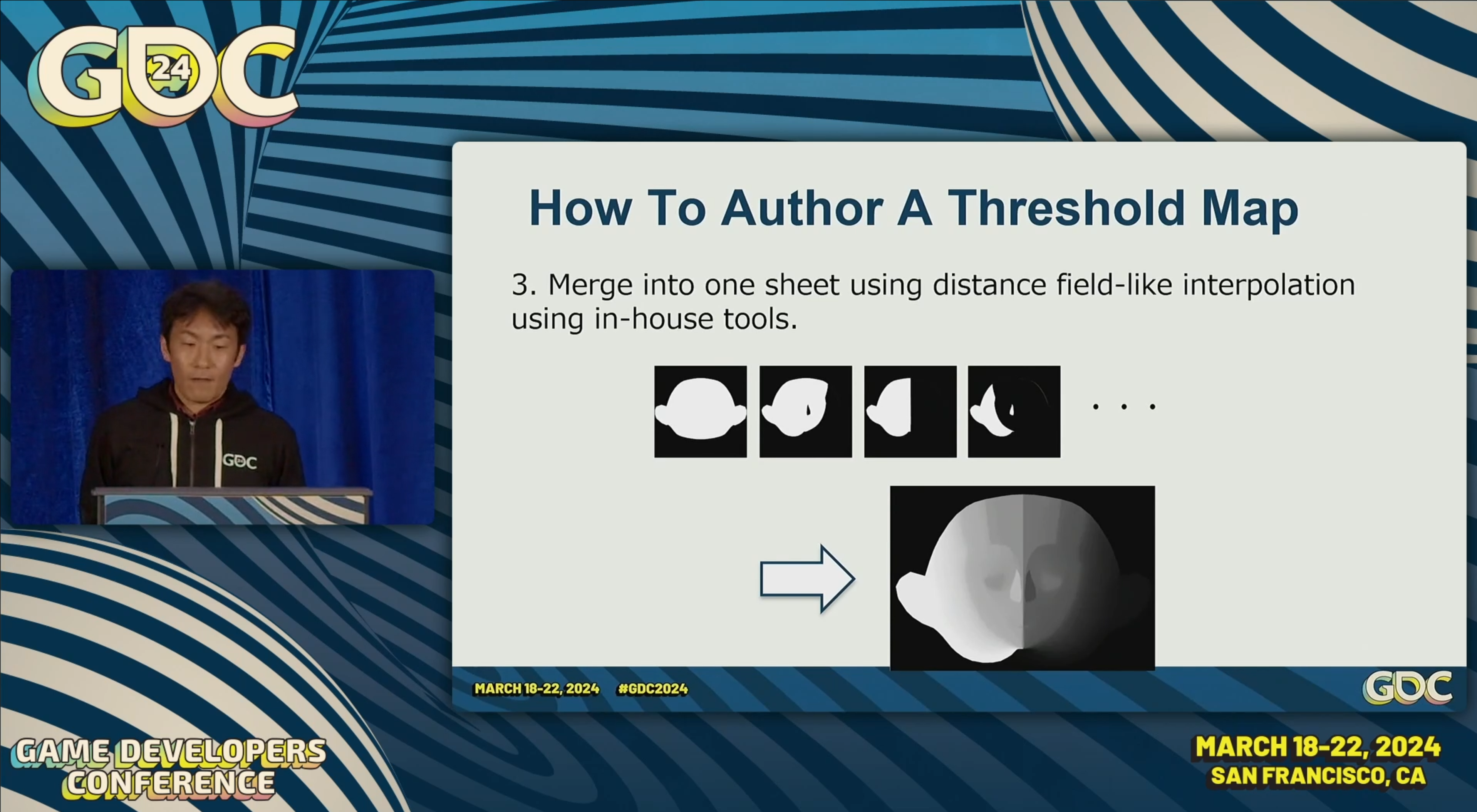 이렇게 만들어진 텍스처는 내부에서 제작한 툴을 사용해서 병합 되었다. 디스턴스 필드와 같은 인터폴레이션을 사용함.