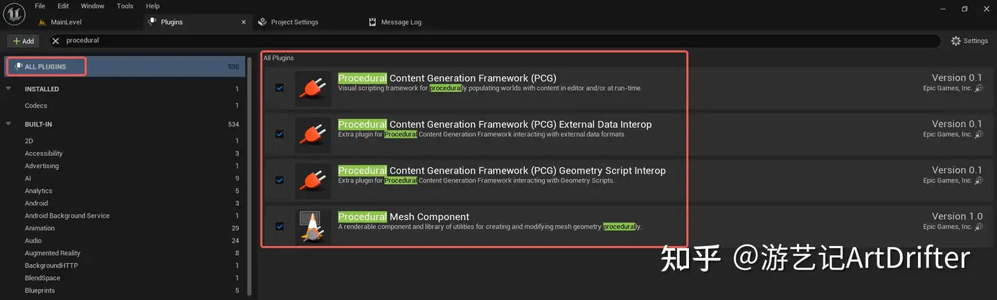 프로그래매틱 콘텐츠 생성 프레임워크 플러그인(PCG 플러그인) 활성화하기